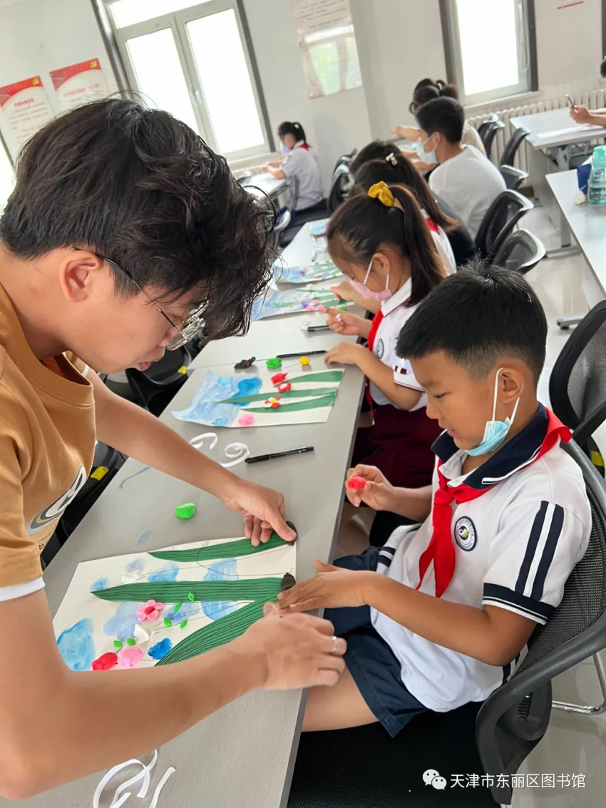 夏山如碧、暑月蝉鸣、花香阵阵、热情奔放是夏天给我们的最大感受,7月27日东丽区图书馆邀请全国青少年美院杯优秀指导教师朱彤彤来到张贵庄詹滨西里党群服务中心为青少年及家长们举办了一场夏日与艺术相结合的以“铃兰花——拼贴画”为主题的“津丽大讲堂”文化公益讲座。