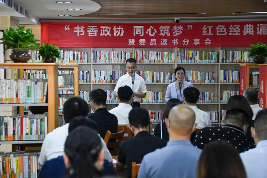 随后在“书香政协 同心筑梦”为主题的红色经典诵读委员读书分享会中,委员们围绕红色经典名著及日常阅读感悟等不同主题进行了倾情分享,大家既谈读书收获,又谈履职尽责,既唱诵经典,又抒心中所感,分享有深度、有广度、有力度,内容丰富。期间,委员们互换图书、交流心得。大家读出了坚定信仰、读出了良好作风、读出了本领担当,表示要把读书成果转化为服务政协履职的动力和成效,为扛起新使命、谱写新篇章贡献更多智慧力量,以实际行动迎接党的二十大胜利召开。
