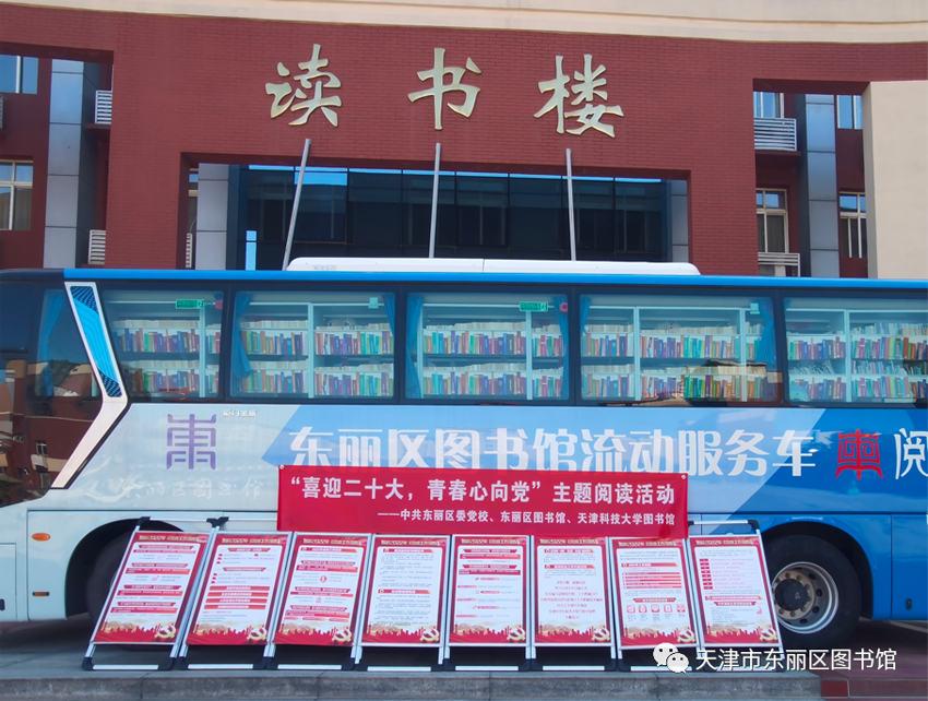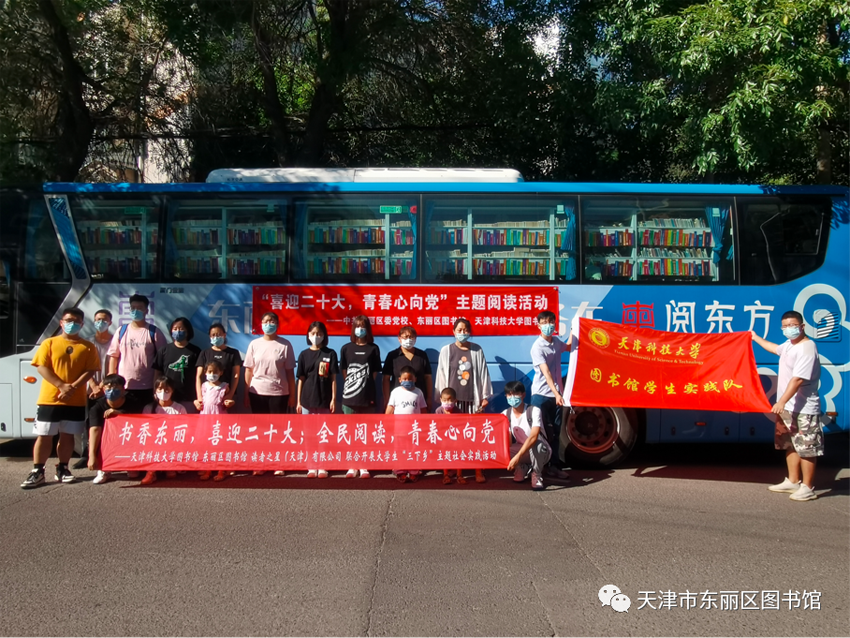 书香东丽,喜迎二十大;全民阅读,青春心向党。近日,东丽区图书馆流动服务车联合天津科技大学图书馆学生实践队走进多个街道社区开展“喜迎二十大,青春心向党”主题阅读推广活动。