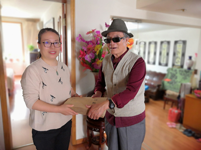 近几年,我馆始终坚持为老人送书上门,通过沟通与了解,姚大爷对新时代,新知识的渴望和需求后,定期为他送去歌曲集、医疗养生、盲文图书等内容的资料,受到了老人及家人的欢迎。