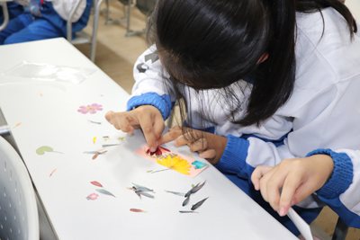 随后同学们很快进入了压花书签的制作中。同学们想象力丰富,各种鲜花和绿叶的搭配妙趣横生。在轻松快乐的氛围中,一件件充满个性和童趣的压花书签在小朋友和家长们的手中诞生。压花是一项古老又流行的艺术创作方式,通过特殊的技术将新鲜的花叶永远珍藏,让孩子们发挥想象进行艺术创作,让孩子们感受生命的可贵。