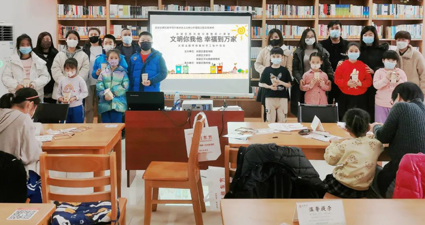 为鼓励青少年树立远大理想,培养环保意识,使社会主义核心价值观的种子在孩子们心中生根发芽。2月10日,东丽区图书馆“书香雅韵小课堂”走进东丽区无瑕城市书房,带领辖区内青少年开展社会主义核心价值观文明主题环保器材手工制作活动。