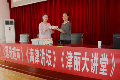 谭老师旁征博引,为大家揭示了姓名文化中的诸多奥秘,让大家感受到了传统文化的魅力。讲座结束后,东丽区图书馆为丰年村街道办事处送上精心挑选的书刊近百册,进一步满足基层群众的阅读需求。