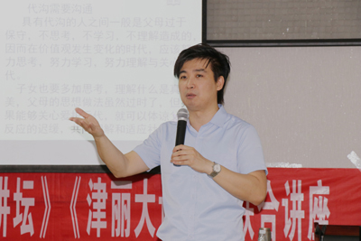家庭是社会的基本细胞。注重家庭、注重家教、注重家风,对于国家发展、民族进步、社会和谐具有十分重要的意义。为了引导和帮助家长更新家庭教育理念,提高家庭教育的质量,构建良好家庭关系,8月8日上午,东丽区图书馆《津丽大讲堂》联合天津市社科联《理论超市》、天津图书馆《海津讲坛》特邀家庭教育高级指导师周勇为枫景家园社区的家长和孩子们进行了一场题为《正视代沟,换位思考,达成共识,和谐融洽是家教的关键》的讲座。