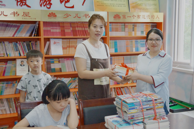 讲座结束后,我馆工作人员到枫景家园社区图书室送上精心挑选的《作文通讯》、《天天爱科学》、《中学生百科》等书刊近百册,让阅读充实孩子们的暑假生活。