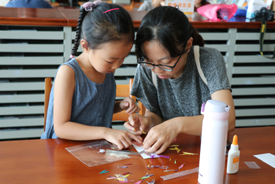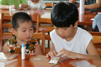 活动中,每组家庭都凝神静气、全神贯注的进行着书签的制作,时光飞逝,一个个精美的书签都被做了出来。图书馆志愿者们也帮助各组家庭一步步完成作品的制作。经过半个多小时的制作,每组家庭都完成了自己的作品,孩子们用美丽的书签寄情白露、许愿金秋。书签虽小,创意无价,小小的押花书签中融入了孩子们对于自然的感情和天马行空的创意。押花书签的制作不仅让小朋友明白了干燥花材的另一种用途,也给小朋友的想象力提供了一个表达的载体。