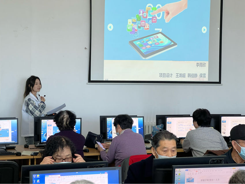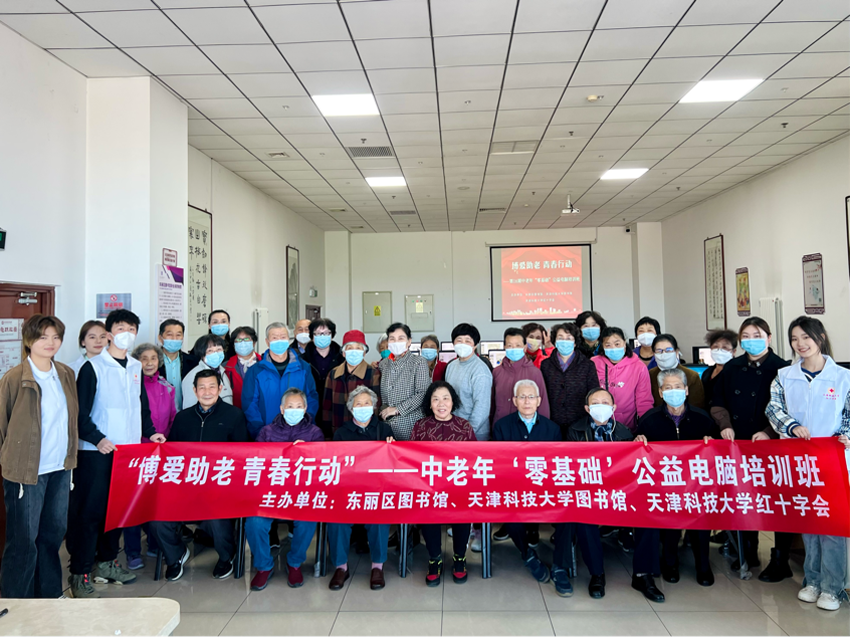 中老年“零基础”公益电脑培训班作为东丽区图书馆的活动品牌,至今已连续开展六年,数千名中老年读者从中获益;本期“博爱助老 青春行动”——中老年“零基础”公益电脑培训班由东丽区图书馆、天津科技大学图书馆、天津科技大学红十字会联合主办,培训班在与高校图书馆携手为学生提供广阔实践平台的同时,切实丰富中老年读者精神生活,进一步锻造“文化惠民”品牌,提高中老年读者电脑、手机等现代电子产品的操作水平,使其享受信息时代的便捷和乐趣。