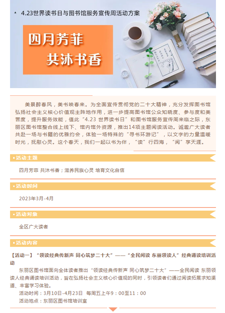 “四月芳菲 共沐书香”——4.23世界读书日与图书馆服务宣传周活动方案