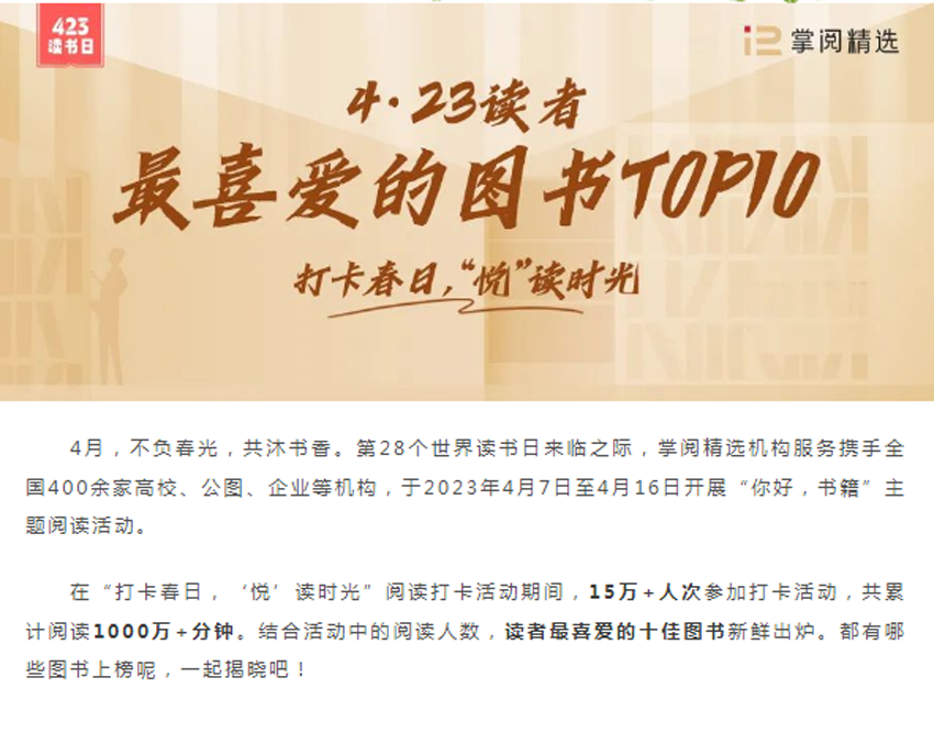 【全民阅读月】| 掌阅精选4·23读者最喜爱的十佳图书