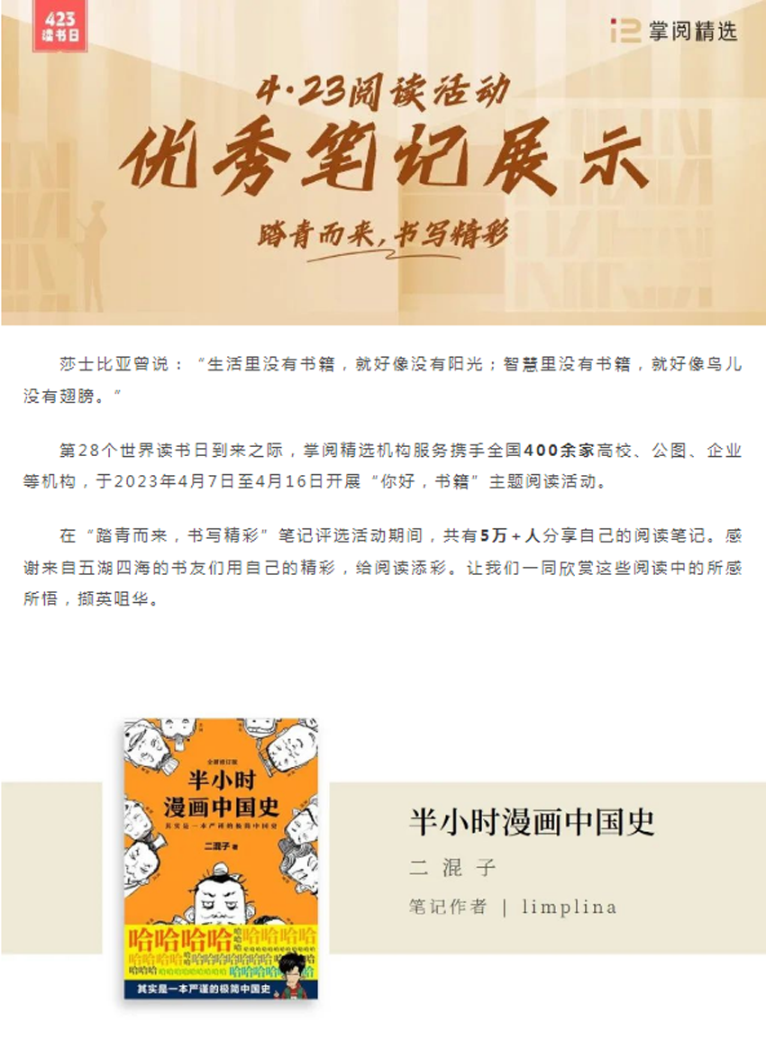 【全民阅读月】| 掌阅精选4·23优秀阅读笔记大赏