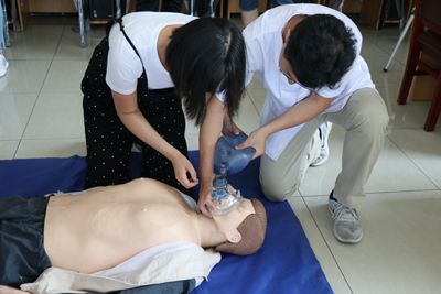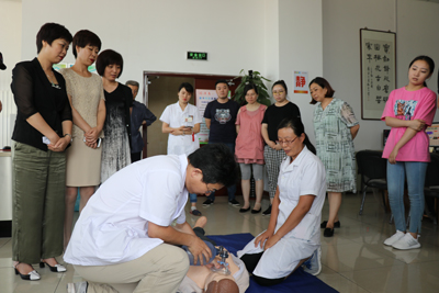 在理论知识讲解后,为了增强馆员们的实际感受,让大家尽快掌握这些急救技能,东丽医院外科主治医师彭志敏在医学假人上做详细规范的应急操作演示,手把手传授心肺复苏手法。馆员们利用医学假人进行实战演练,现场气氛十分热烈。大家纷纷表示,通过此次应急知识讲座,掌握了一些实用的急救知识,受益匪浅。