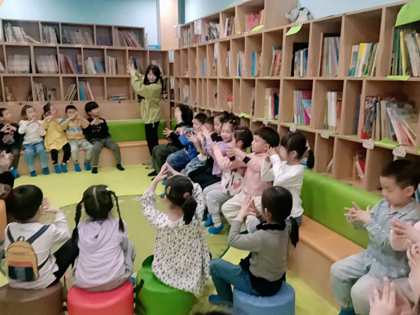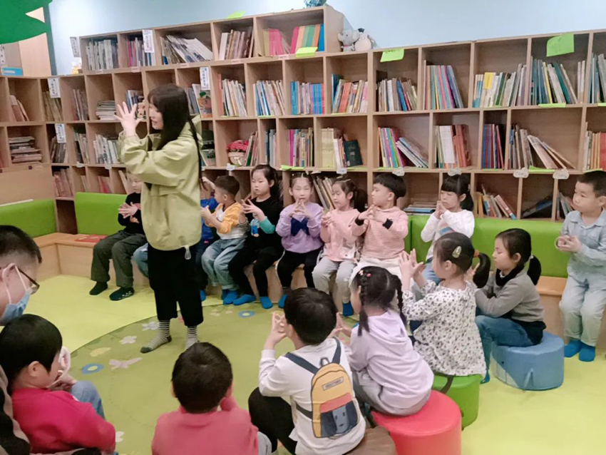 首先小与老师用“手指操”游戏与小朋友们进行了互动。手指操游戏可以很好的锻炼孩子们手、眼、大脑的协调性,同时对语言、视觉、触觉等功能的发展也有极大的促进作用。