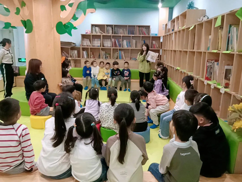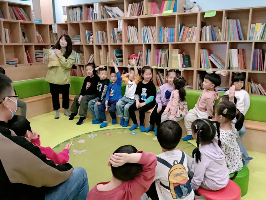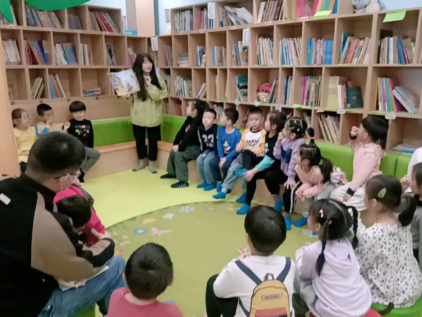 近日,在丰年幼儿园二楼活动区,“阅东方”图书车的小与老师为小朋友们带来了红色绘本《小宣传员》。
