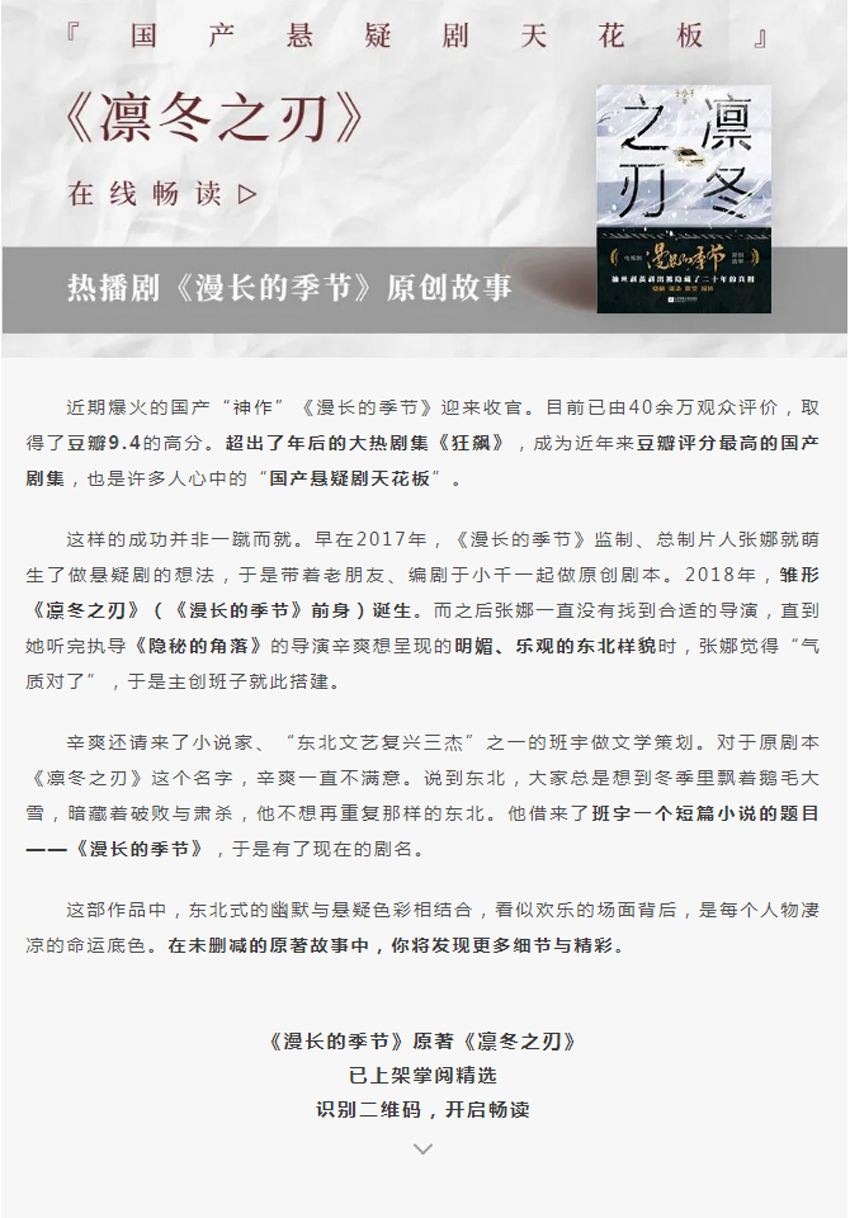 “国产悬疑剧天花板”《漫长的季节》原著上线 | 《凛冬之刃》 在线畅读