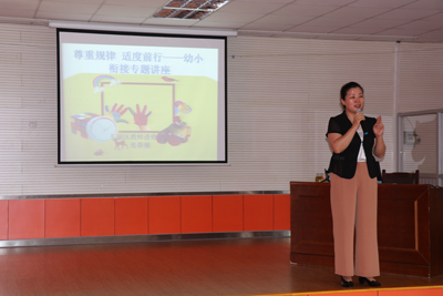 张老师阐述了几个观点:父母是孩子的第一任教师,一、要以幼儿为本、终身学习、建构性的教育观、“教”应当是幼儿主动地、建构地学习与发展的过程。二、幼小衔接到底衔接的是什么?就是养成教育即习惯和能力的培养。分别从尊重幼儿身心发展规律;游戏是幼儿的天性,幼儿学习以游戏为基本活动;尊重个体差异,因材施教;尊重幼儿的学习规律。三、提出培养学习习惯、生活习惯、锻炼的习惯;尊重规律,适度前行。
