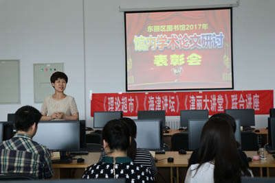为进一步激发我馆干部职工论文写作的积极性,帮助大家更好地掌握论文写作方法及技巧,提升论文写作水平,同时,提高图书馆整体学术水平,满足图书馆现代化建设需求,5月28日上午,在2018年图书馆服务宣传周到来之际,东丽区图书馆《津丽大讲堂》联合天津市社科联《理论超市》、天津图书馆《海津讲坛》邀请南开大学文学院教授张铁荣老师到馆,以“有关论文的写作”为题在二楼电子阅览室举办了一场写作技巧培训讲座。