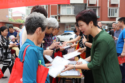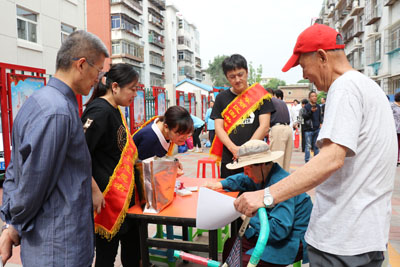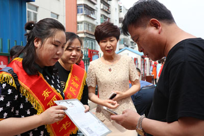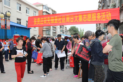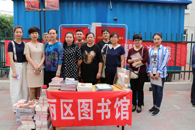 为深入学习贯彻习近平新时代中国特色社会主义思想和党的十九大精神,推进图书馆志愿服务规范化、制度化、常态化,在图书馆服务宣传周到来之际,5月18日上午,东丽区图书馆馆长张广明携领导班子及图书馆工作人员参加了张贵庄街先锋里社区开展的“周日大集”志愿服务活动。