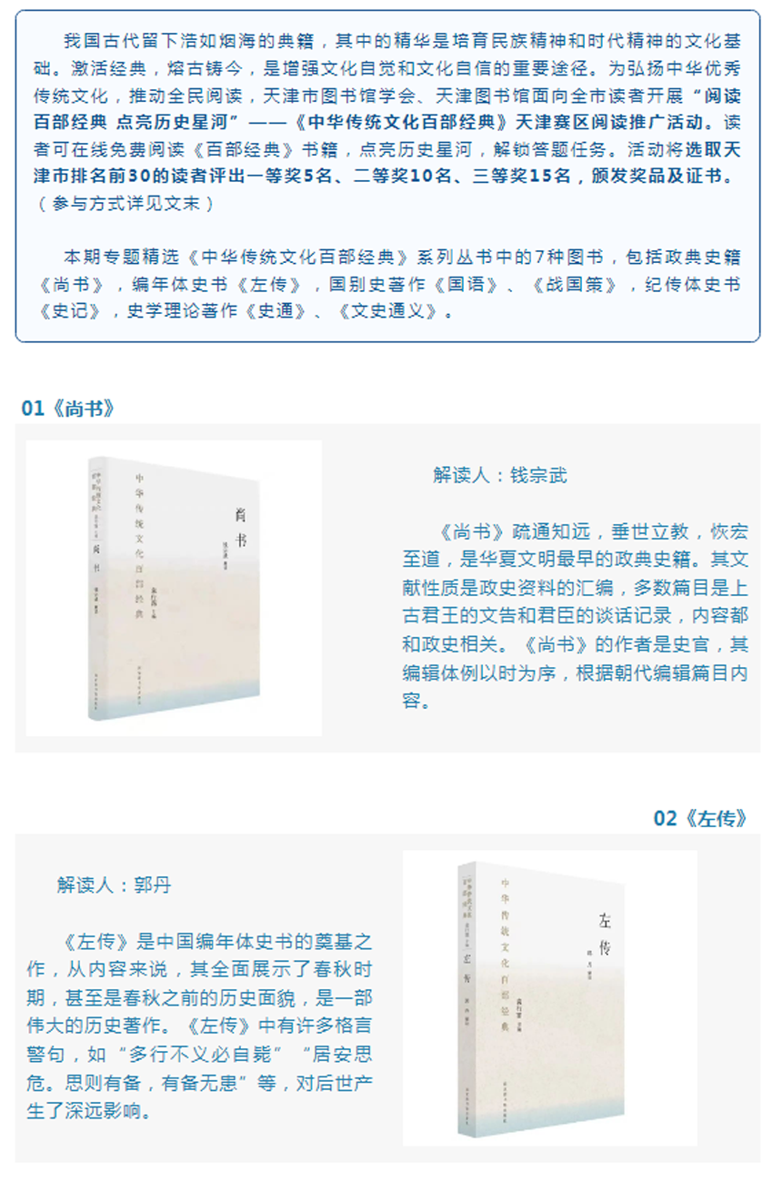 “阅读百部经典 点亮历史星河”——《中华传统文化百部经典》有奖阅读活动图书推荐(第六期)
