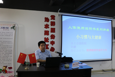 许老师从生活习惯病的病因学出发,指出不良的饮食习惯、吸烟酗酒、心理压力大等不健康的生活方式和习惯作为影响健康的因素会引发高血压、高血脂、糖尿病等生活习惯病,并给出了养成食盐、糖、油适量的饮食习惯以及合理用枕等睡眠习惯的建议。参加讲座的居民纷纷表示受益匪浅,希望以后多举办类似的活动。