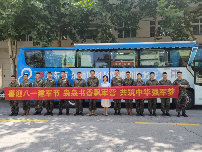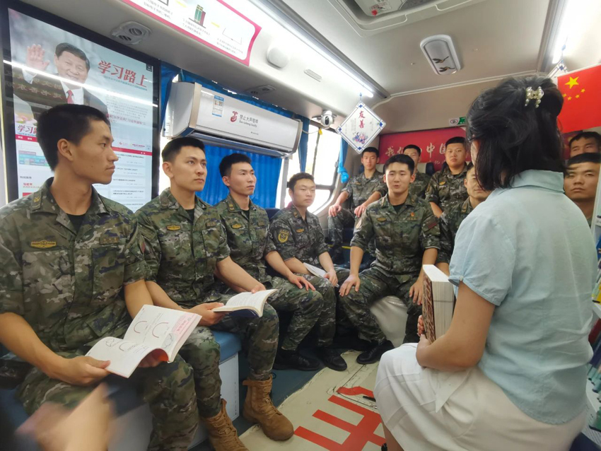 八一建军节前夕,流动服务车开进了武警天津总队执勤第四支队,图书馆工作人员和部队官兵一起开展了 “喜迎八一建军节 袅袅书香飘军营 共筑中华强军梦”活动,活动在送文化进军营的同时,进一步增强了军民鱼水情。