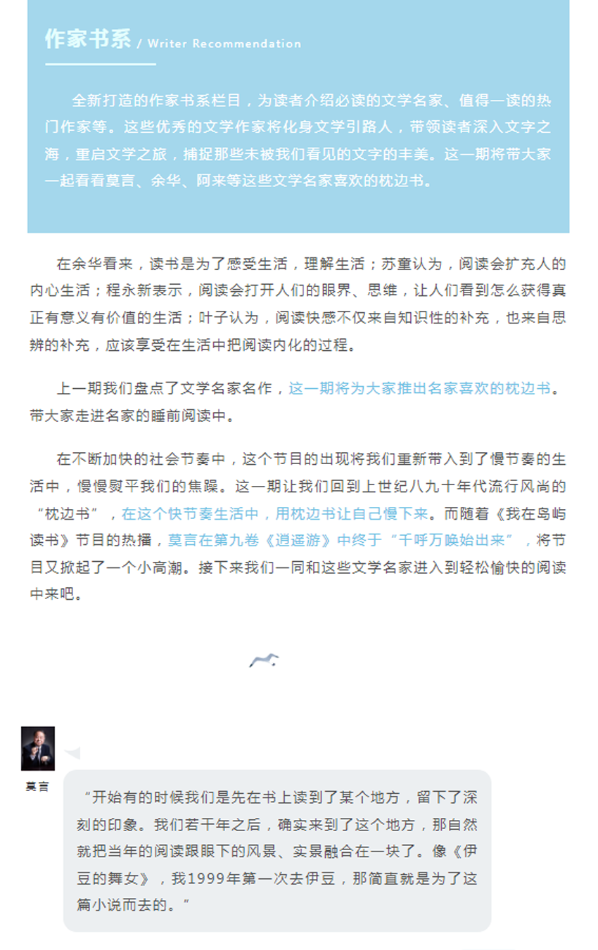 作家书系 | 莫言余华两大文学界顶流相聚,品读文学大师的“枕边书”