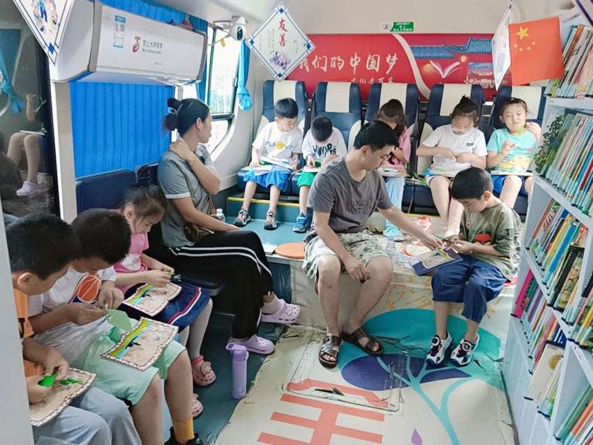 近日,东丽区图书馆流动服务车在无瑕街道开展“亲子共读绘本《建长城》古诗词贴画”活动,吸引了15位读者参加。