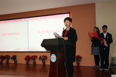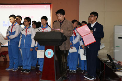 表彰会一开始,初一年级部分学生演出的《新版三字经》节目将表彰会推向了高潮,现场气氛热烈,掌声不断。101位分获区级征文一、二、三等奖的同学和10位优秀辅导教师上台接受了表彰。东丽区图书馆副馆长岳立春代表东丽区图书馆致辞,我馆将建设“阅读传承文化 书香浸润人生”专题数据库,并在今后不断创新活动形式。最后,执行校长吕家华代表学校致辞,感谢区文广局、图书馆等单位对学校文化建设的长期关注和支持,为学生搭建阅读平台,提供了更多学习和展示的机会。