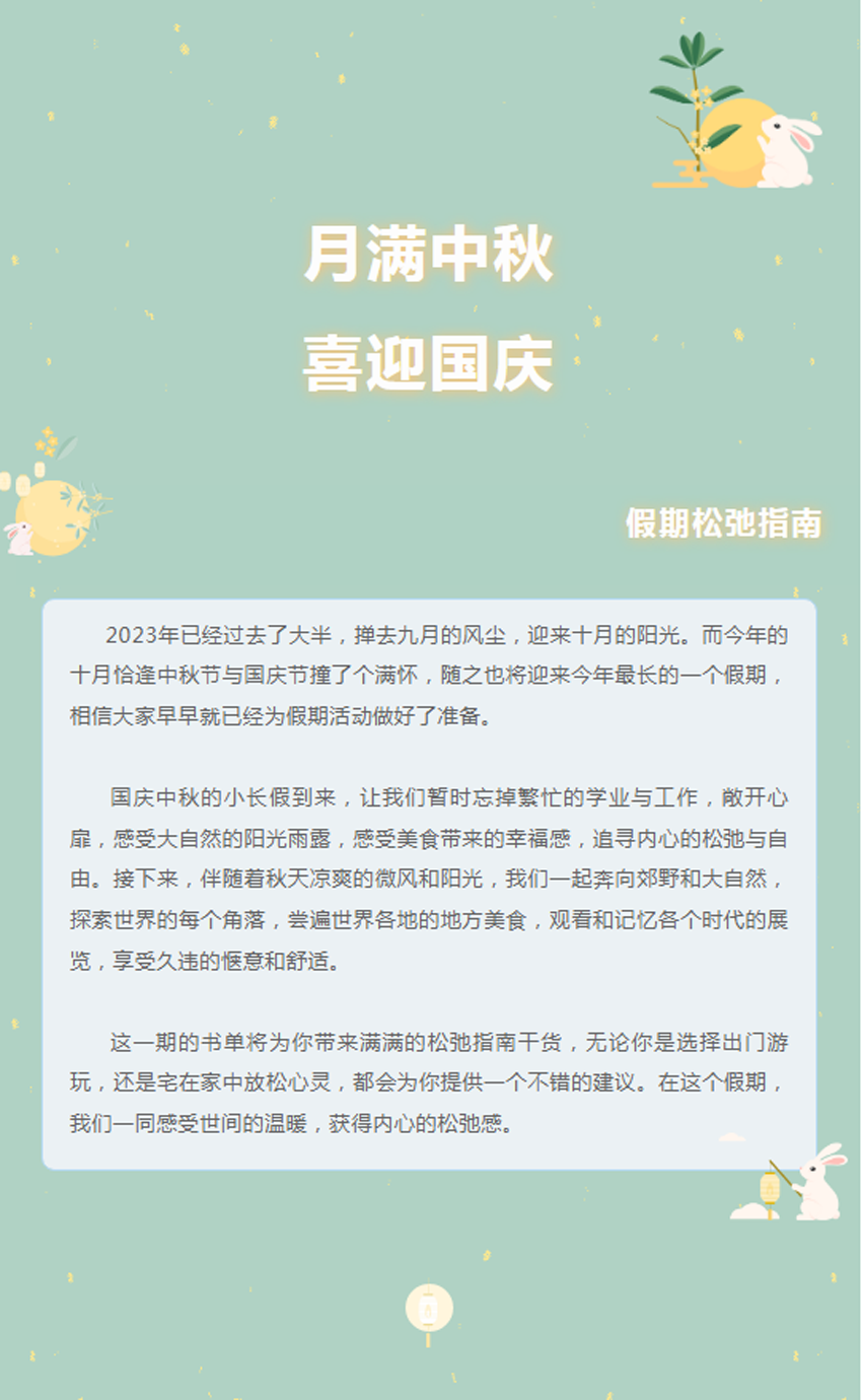 喜迎中秋,共庆华诞| 送你一份假期松弛指南