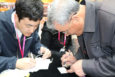(东丽区文广局副局长冯强为一等奖获奖者颁奖)