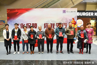 东丽区文化广播电视局冯强副局长致辞并宣布活动启动。活动开始,东丽区图书馆副馆长岳立春、副馆长曹振玲为“厉害了,我的国”主题征文活动获得者颁发荣誉证书。