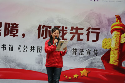 (工作人员为市民介绍公共图书馆法律知识-1)