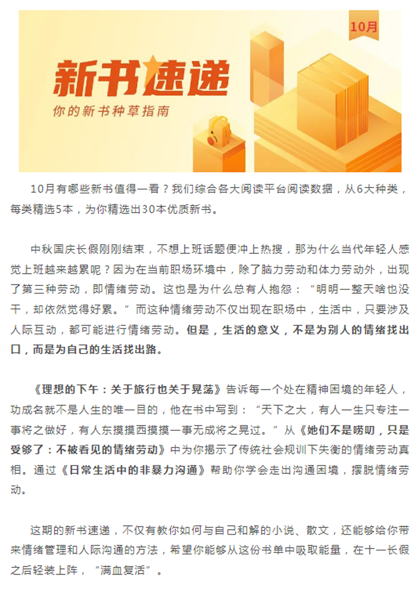 10月新书速递 | 十一长假过后,在阅读中“满血复活”