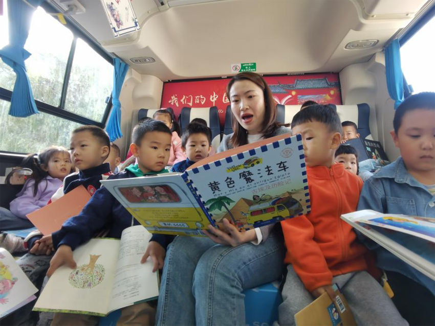 为全面深入地推进全民阅读行动,弘扬“爱读书、善读书、好读书”的全民阅读优良传统,丰富人民群众精神文化生活。近日,东丽区图书馆流动服务车开进丰年幼儿园,与小朋友们一起开启了一场“同读一本书之《黄色魔法车》”的主题阅读活动。