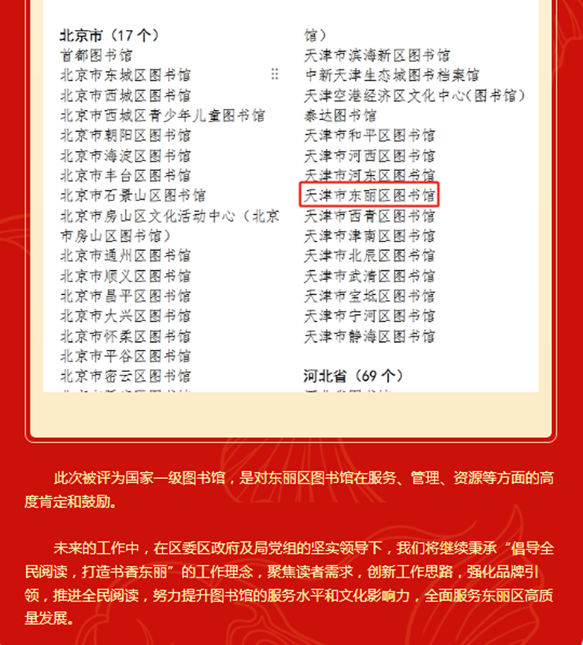 喜报!东丽区图书馆获评国家一级馆!
