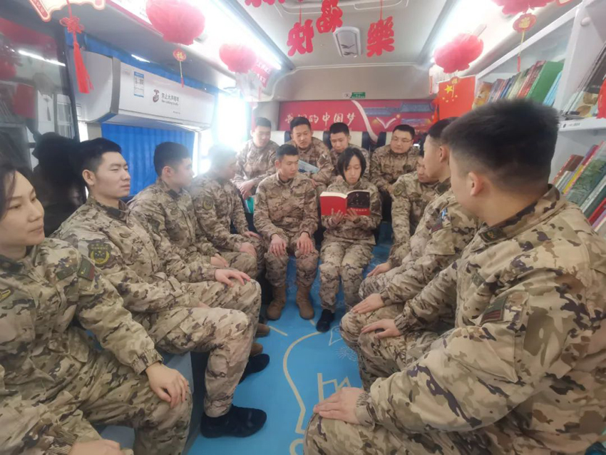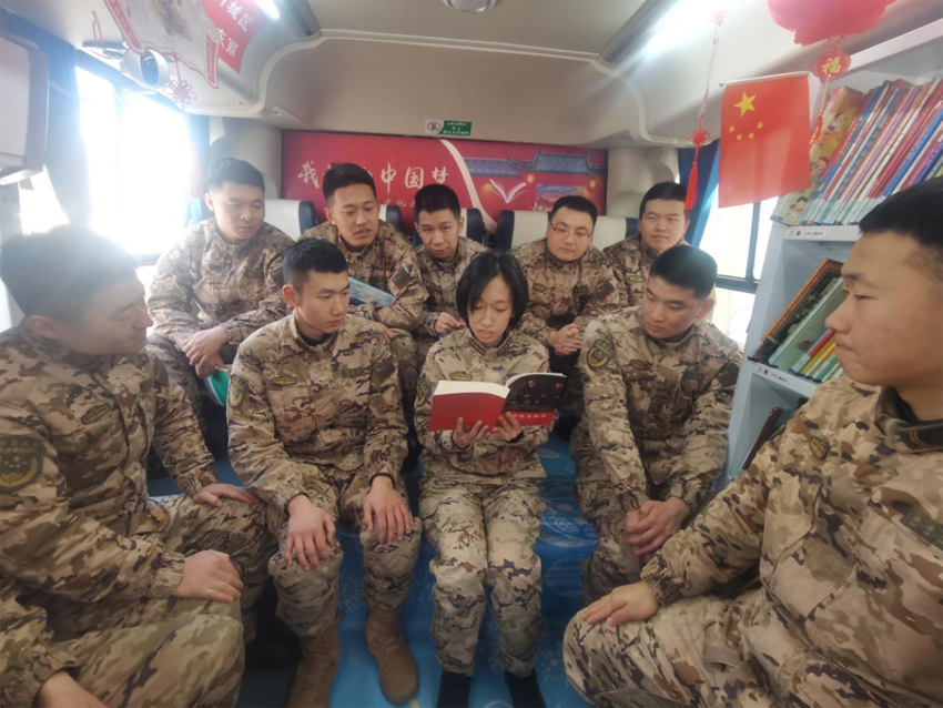 活动伊始,服务车老师与官兵们一起阅读《习近平扶贫故事》,士兵们你一言我一语,从内容概要到读书感悟,氛围和谐、融洽,充满书香气息。
