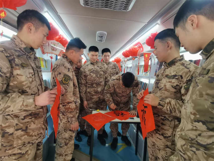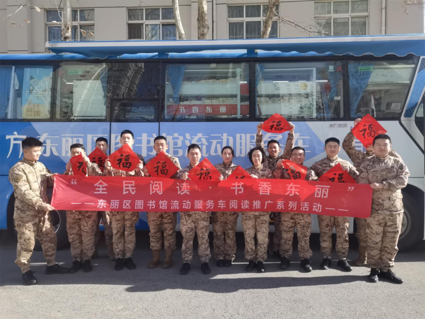 军民鱼水一家亲,文化拥军润军心。为营造浓厚的双拥社会氛围,进一步丰富军营的文化生活,让全民阅读走进军营,1月26日,东丽区图书馆流动服务车开进武警天津总队执勤第四支队,开展“新春福字进军营 翰墨书香情谊深”送书香进军营新春系列特别活动。