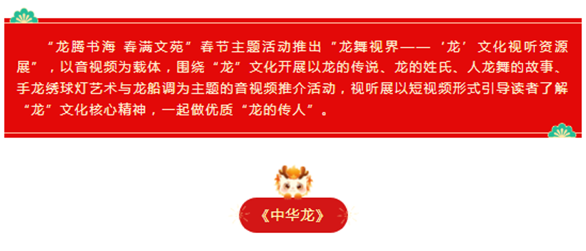 【我们的中国梦·图书馆里过大年系列活动】| “龙腾书海 春满文苑”春节主题活动——“龙”文化视听资源展示(一)