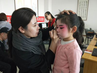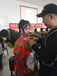 “梨园贺岁·百戏昇平”戏曲文化主题展是图书馆“网络书香过大年”系列活动之一,展览结合推广工程资源库群“中国戏曲文化知识库”内容,设计兼具文化性、知识性和互动性。家长和孩子们认真地跟随讲解老师走近戏曲图片展,如同探寻宝藏一般,开启了中国传统文化之旅。无妆不成戏,为了灵活立体地展现戏曲之美,图书馆特意请来专业化妆师,小朋友们在化妆师的精心装扮下,穿上戏服成功“穿越”开演,在镜头前有模有样,倍感欣喜。