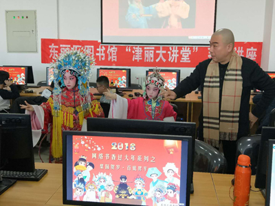 我为培养读者的戏曲鉴赏能力,活动当天图书馆还举办了“津丽大讲堂”专场讲座,特邀京剧表演艺术家尚长荣先生的亲传弟子、国家一级演员王杰老师莅临现场进行一场题为“如何欣赏戏曲”的讲座,男女老幼60余人听取了讲座。讲座中,老师设计了丰富的互动体验,通过服饰、扮装、摆设、背景、丰富的表演手法等等,让读者近距离地感受戏曲之美无处不在。