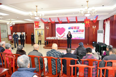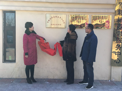 昨天上午,军粮城养老服务中心一楼多功能厅张灯结彩,充满节日的氛围,东丽区图书馆.军粮城养老服务中心分馆揭牌赠书仪式在这里举行,我馆工作人员、养老中心管理人员及数十位老人出席仪式。