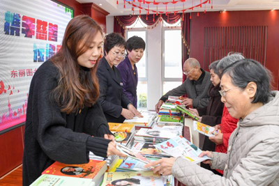 在简短的揭牌仪式后,我馆工作人员将有关养生保健、文学艺术、历史科技类等400册书刊交送到养老中心工作人员手中,并对分馆今后的书刊管理、流通、读书活动开展等工作提出了相关的要求,养老中心的老人们纷纷挑选自己喜爱的书刊进行阅读,现场洋溢着欢声笑语。