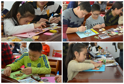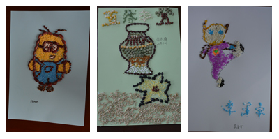 随后,在老师的指导下,孩子们认识了腊八粥的十余种原材料,并且用现场提供的材料,兴致勃勃地和家长一同携手制作精巧的五谷画。五谷画作为一种古老的汉族民间艺术,是以各类植物种子和五谷杂粮为本体,通过粘、贴、拼、雕等手段,利用其它附料粘贴而成的山水、人物、花鸟等形象的画面,运用构图、线条、明暗、色彩等造型手法,对其进行特殊处理所形成的图画。