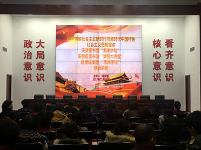 为了进一步贯彻好习近平总书记新时代中国特色社会主义思想,落实好党的十九大精神,11月30日上午,东丽区图书馆“津丽大讲堂”联合天津图书馆海津讲坛、张贵庄街“市民学校”共同举办了“中国特色社会主义新时代与新时代中国特色社会主义思想”宣讲,张贵庄街文教专干和社区文化骨干144人参加了活动。