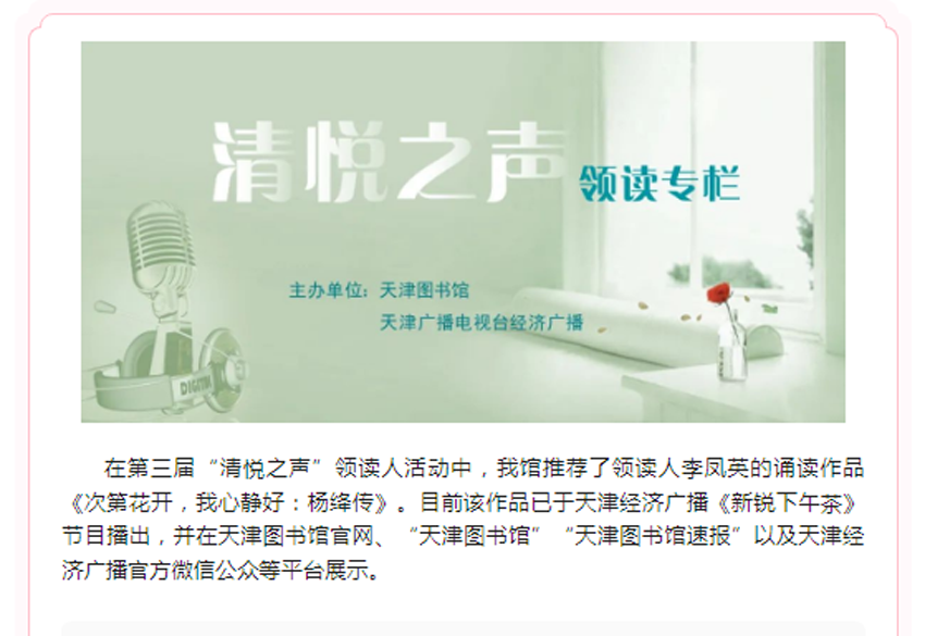 【作品赏析】| 清悦之声(第五十四期):《次第花开,我心静好:杨绛传》——优雅一世,睿智百年