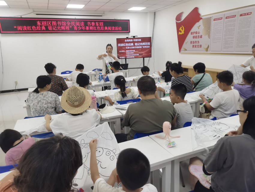 百年风雨红旗更艳,万里江天岁月如歌。读书是一场心灵的旅程,阅读红色经典更是一场心灵的洗涤。为倡导品读红色经典,传承红色精神,引导青少年在书籍中汲取智慧养分,在红色经典中感悟红色力量,持续增强读红色书籍的吸引力和感染力,东丽区图书馆流动服务车联合香邑花园社区开展“阅读红色经典 铭记光辉历程”——青少年暑期红色经典阅读活动。