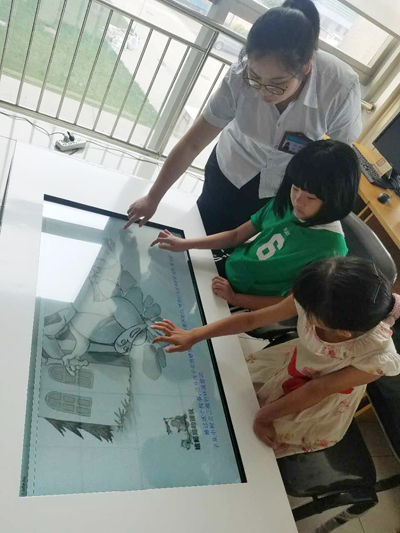 少儿触摸桌综合考虑不同阅读习惯儿童的发展特点,设置了开心英语、儿童歌曲、儿童故事、儿童图书馆、儿童诗词、幼儿艺术、国学启蒙、少儿游戏、右脑识字9大版块。依托互联网海量的数字化资源,采用视频、音频、多媒体动画等表现形式,提供多种少年儿童喜闻乐见的资源内容。系统内容均以直观形象的动画情景呈现给孩子们,在编排过程中,注重儿童的智力开发和身心健康的全面成长,内容遵循知识性和趣味性原则,让孩子们在快乐中拓宽了视野,增长了知识。此次体验活动备受小读者们的好评。