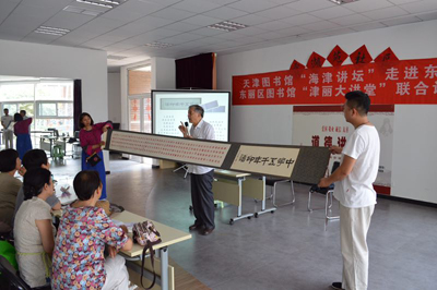 5月19日,东丽区图书馆“津丽大讲堂”联合天津图书馆“海津讲坛”公益讲座下基层活动,在东丽湖街开讲。