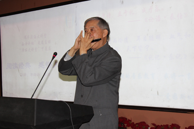 讲座中,李教授理论联系实际,深入浅出,概括了中国优秀传统文化的特点,并从文字、对联及史学等不同方面详尽地介绍了中国优秀传统文化的独特之处,在整个讲座过程中,李教授声情并茂,妙语连珠,引人入胜,让大家从不同方面切身感受到了中国优秀传统文化的无限魅力。最后,李教授用口琴独奏和古诗词方式吟唱的《沁园春·雪》,让观众在传统文化的优美意境和爱国情怀中结束了讲座。