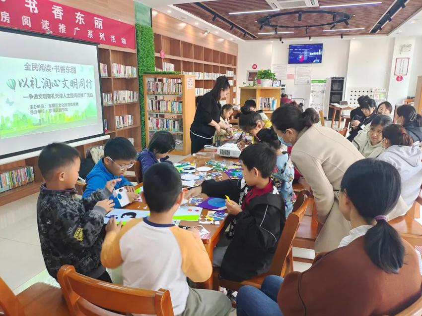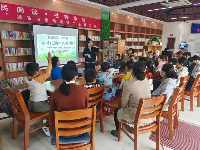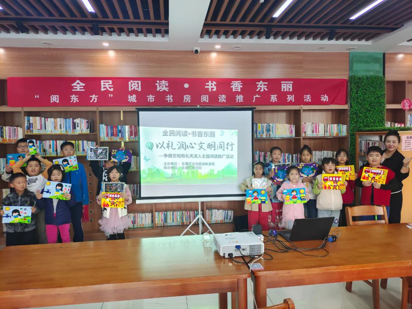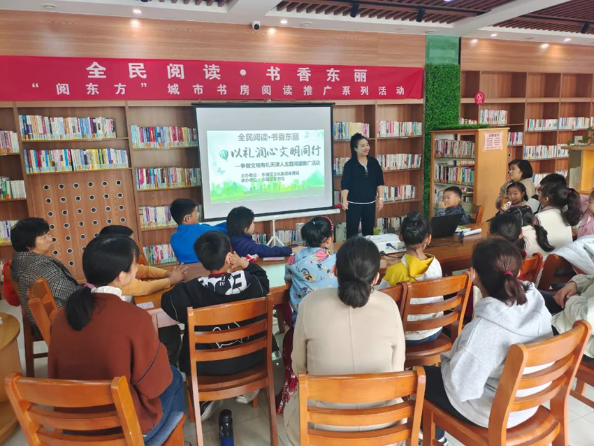 当今社会,部分青少年对文明礼仪不重视,礼仪观念淡薄。在学校里,不尊重师长、和同学之间相处不讲礼貌;在社会上不懂怎样称呼他人,随心所欲;在家里不懂孝敬长辈,以自我为主中心等现象屡见不鲜。为培养青少年尊重他人的意识,形成良好的道德品质和社会责任感。10月27日,东丽区“阅东方”金桥城市书房联合枫愉园社区开展全民阅读·书香东丽——“以礼润心 文明同行”争做文明有礼天津人主题阅读推广活动。