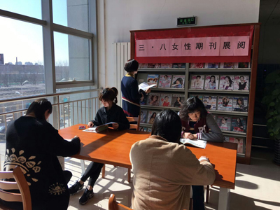 三八国际妇女节来临之际,图书馆阅览部特别向读者推荐、展览了适合女性朋友阅读的期刊。本次展览活动共精心挑选了40本期刊,内容涉及服装、美容、婚姻、家庭、文学等诸多不同领域。受到众多女性读者的好评,吸引了众多女性读者驻足阅览。